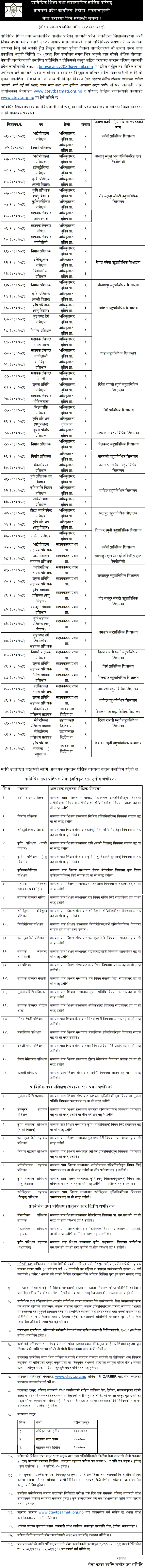 CTEVT Bagmati Province Office Vacancy for Various Teaching Positions
